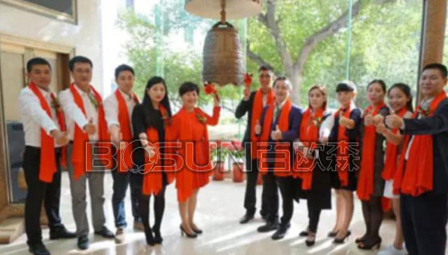 2016年9月9日,深圳市百歐森環保科技股份有限公司(股票代碼:838287)新三板掛牌敲鐘儀式在北京成功舉行。在公司股東及高管、公司戰略合作伙伴以及媒體記者的共同見證下,董事長鄔婭玲敲響了開市寶鐘,標志著百歐森環保正式邁入資本市場新時代,迎來了其成長史上的重要一刻。